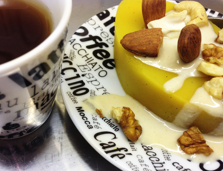 Der Panna Cotta kann wie ein Kuchen angeschnitten werden.